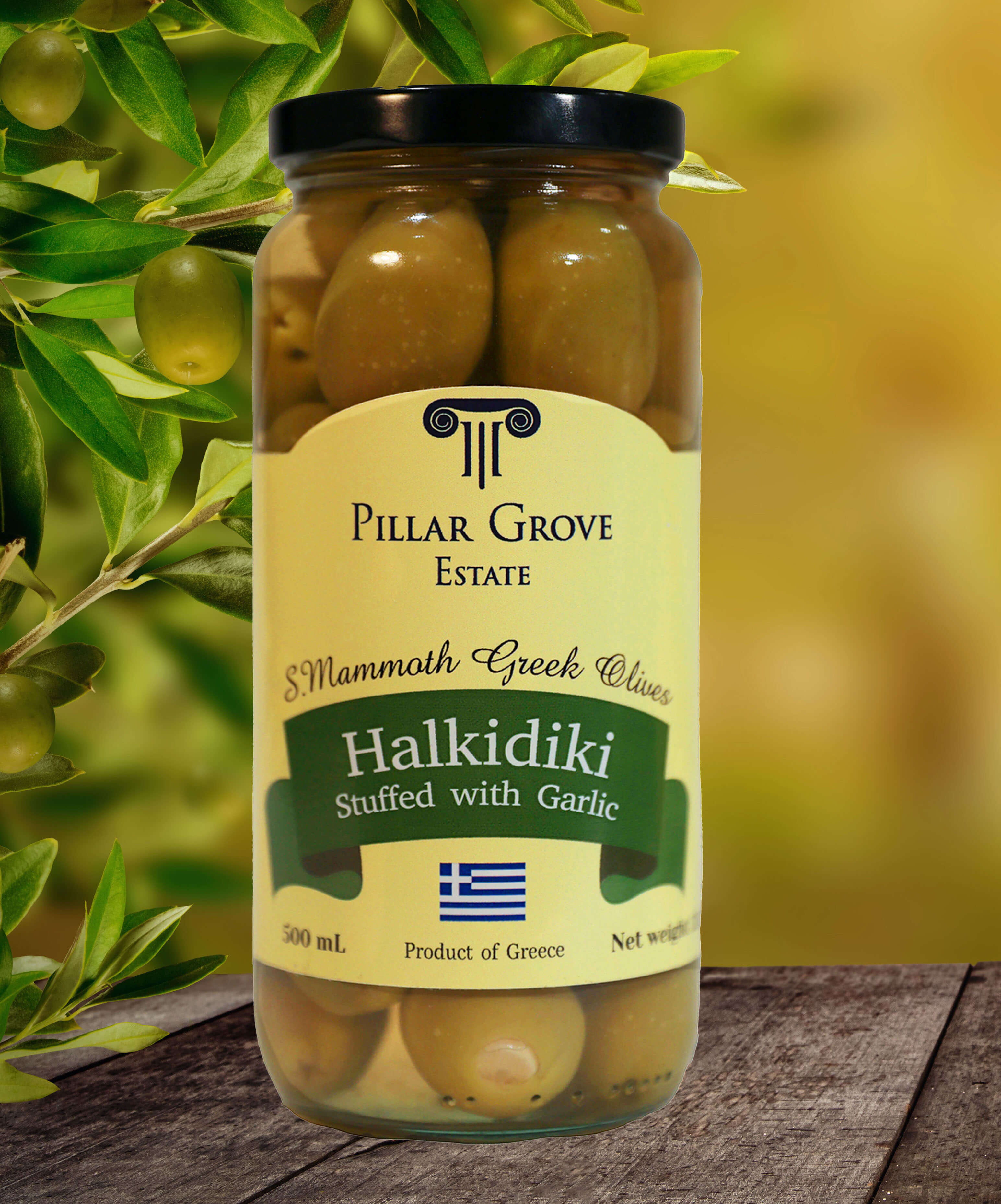 Halkidiki S.Mammoth Stuffed with Garlic, Greek Green Olives, 500 ml Jars