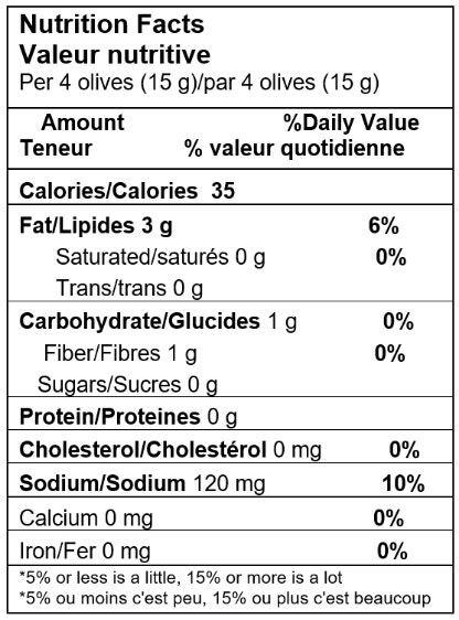 Per 4 olives (15 g)/par 4 olives (15 g)